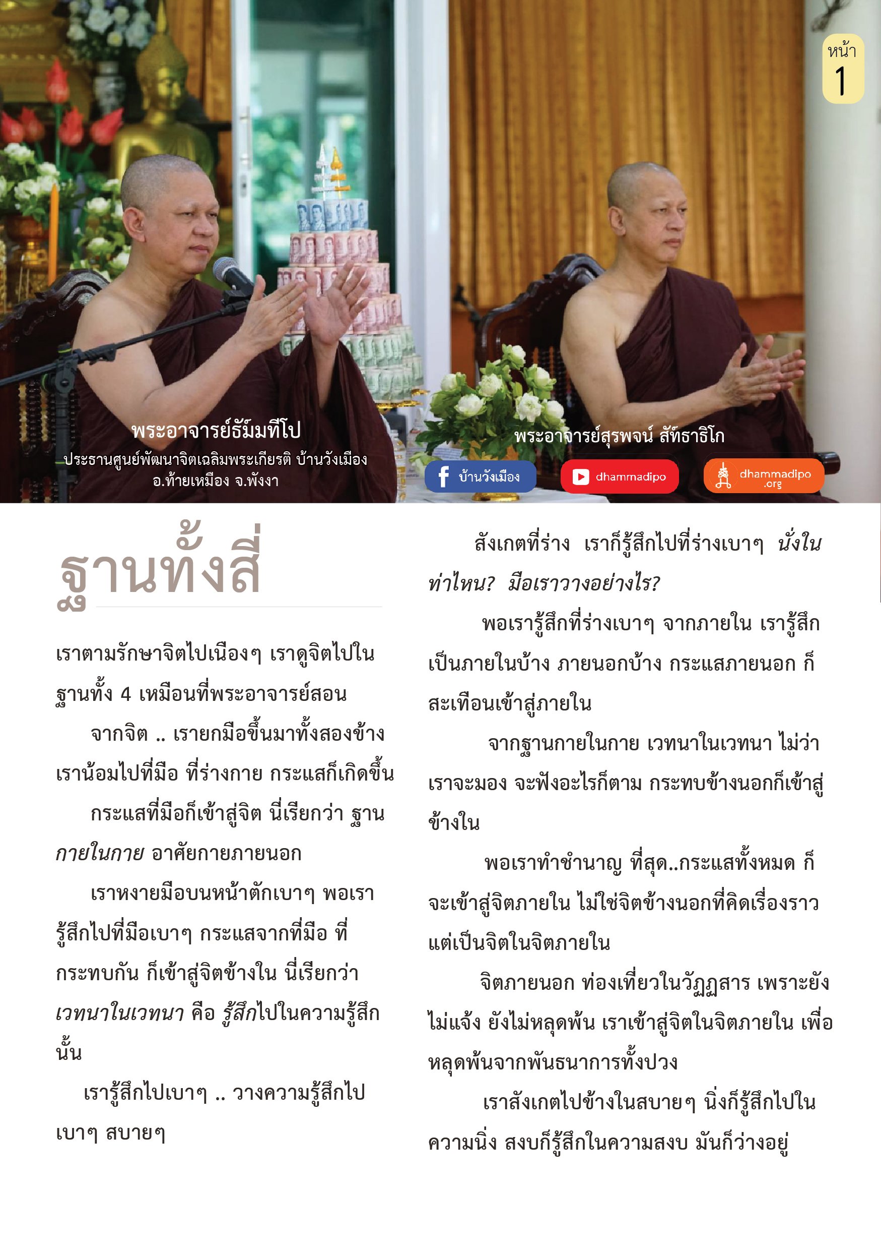 เราตามรักษาจิตไปเนืองๆ เราดูจิตไปใน ฐานทั้ง 4 เหมือนที่พระอาจารย์สอน